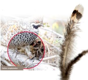 Même avec ses facultés de camouflage remarquables, la Gélinotte des bois nous laisse cependant quelques indices révélant sa présence :