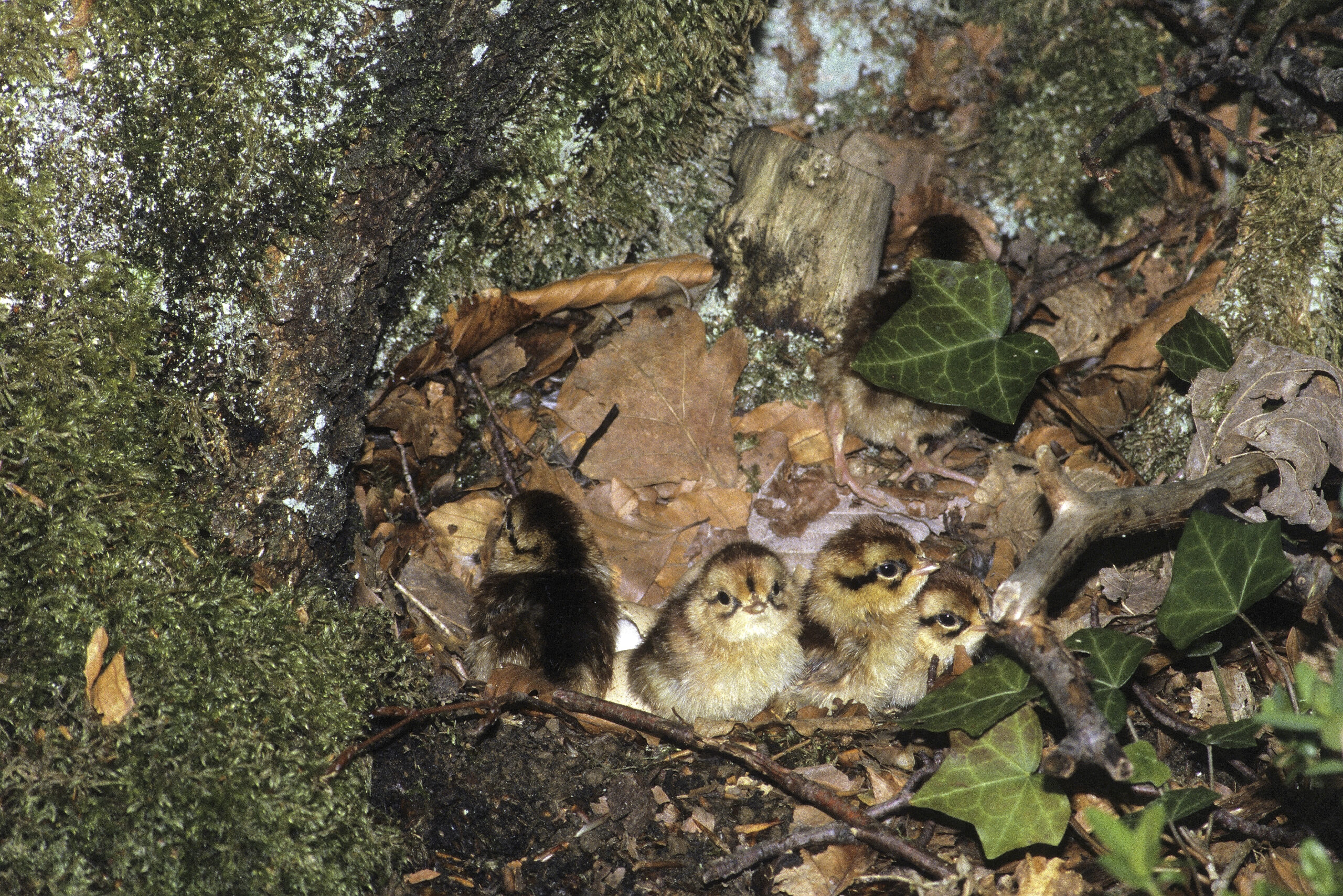 Le pic des éclosions se situe fin mai début juin en montagne mais plus tôt en plaine. Le dernier jour de couvaison, la poule ne quitte pas le nid. La totalité des œufs éclot en quelques heures. L'éclosion semble synchronisée par le pépiement des jeunes déjà sortis de l'œuf. Les poussins sont nidifuges, c'est à dire qu'ils quittent le nid très rapidement après l'éclosion lorsque le duvet est sec (quelques heures seulement).