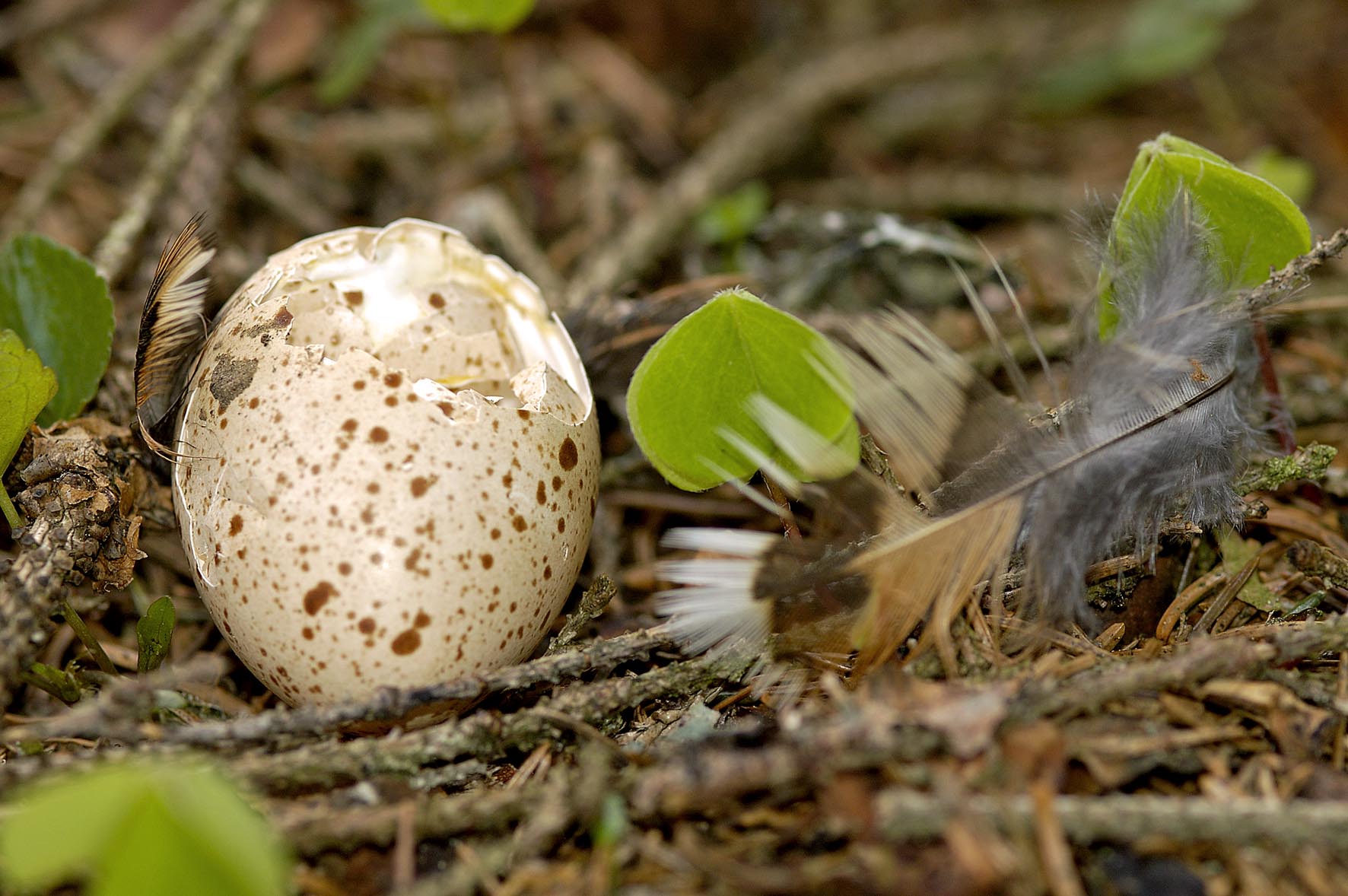 - coquille d'oeuf : la découverte de ce type d'indice est très rare mais les informations que l'on peut en tirer sont très importantes puisqu'elles constituent une preuve indiscutable de nidification. L'espèce étant nidifuge, elle ne s'occupe pas d'évacuer les coquilles du nid. Si les œufs ne sont pas mangés, ils sont découverts dans la cuvette de ponte ou à proximité immédiate. La couleur de la coquille est crème ou fauve pâle, finement pointillé ou tacheté de brun rougeâtre. Les oeufs mesurent environ 41 à 41.5 mm de long et 21 à 28 mm de large.