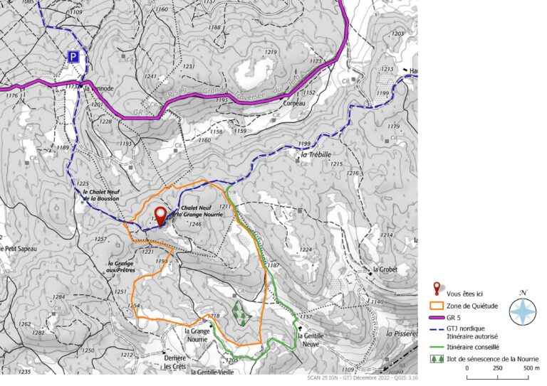 Dans cette zone, qui comprend des milieux forestiers, de pré-bois et d’alpages, il est demandé aux pratiquants et aux promeneurs de rester sur les sentiers du 15 décembre au 30 juin, afin de ne pas déranger la faune.